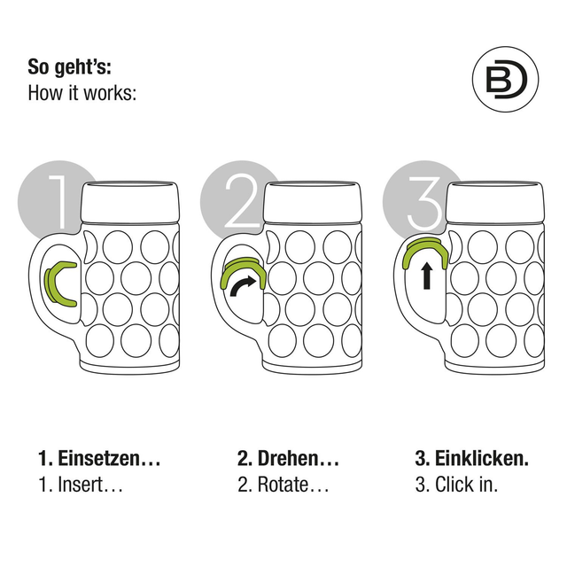 🍺 HOBDEE ist der kleine Held im Festzelt oder im Biergarten. Der praktische Helfer wird einfach unter dem Henkel des Maßkrugs angeclipst.